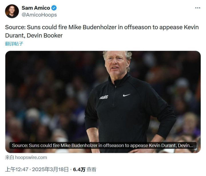 Skip的看法并非凭空猜测,根据AmicoHoops的消息:太阳队可能会在休赛期解雇迈克-布登霍尔泽,以此来安抚杜兰特和布克。在近期每一场比赛中,都几乎能看到布克,杜兰特和布登霍尔泽的激烈矛盾。